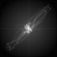 Although synth poems are audio focused, a fitting visualization is added as an ode to early computer graphics that used vector displays to visualize analog signals. What you see is a direct representation of the sound signal, as it would appear on an oscilloscope.