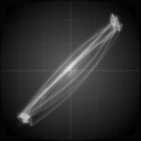 Although synth poems are audio focused, a fitting visualization is added as an ode to early computer graphics that used vector displays to visualize analog signals. What you see is a direct representation of the sound signal, as it would appear on an oscilloscope.
