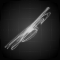 Although synth poems are audio focused, a fitting visualization is added as an ode to early computer graphics that used vector displays to visualize analog signals. What you see is a direct representation of the sound signal, as it would appear on an oscilloscope.