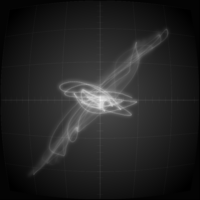 Although synth poems are audio focused, a fitting visualization is added as an ode to early computer graphics that used vector displays to visualize analog signals. What you see is a direct representation of the sound signal, as it would appear on an oscilloscope.