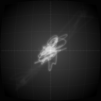 Although synth poems are audio focused, a fitting visualization is added as an ode to early computer graphics that used vector displays to visualize analog signals. What you see is a direct representation of the sound signal, as it would appear on an oscilloscope.