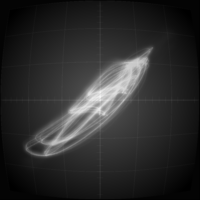 Although synth poems are audio focused, a fitting visualization is added as an ode to early computer graphics that used vector displays to visualize analog signals. What you see is a direct representation of the sound signal, as it would appear on an oscilloscope.